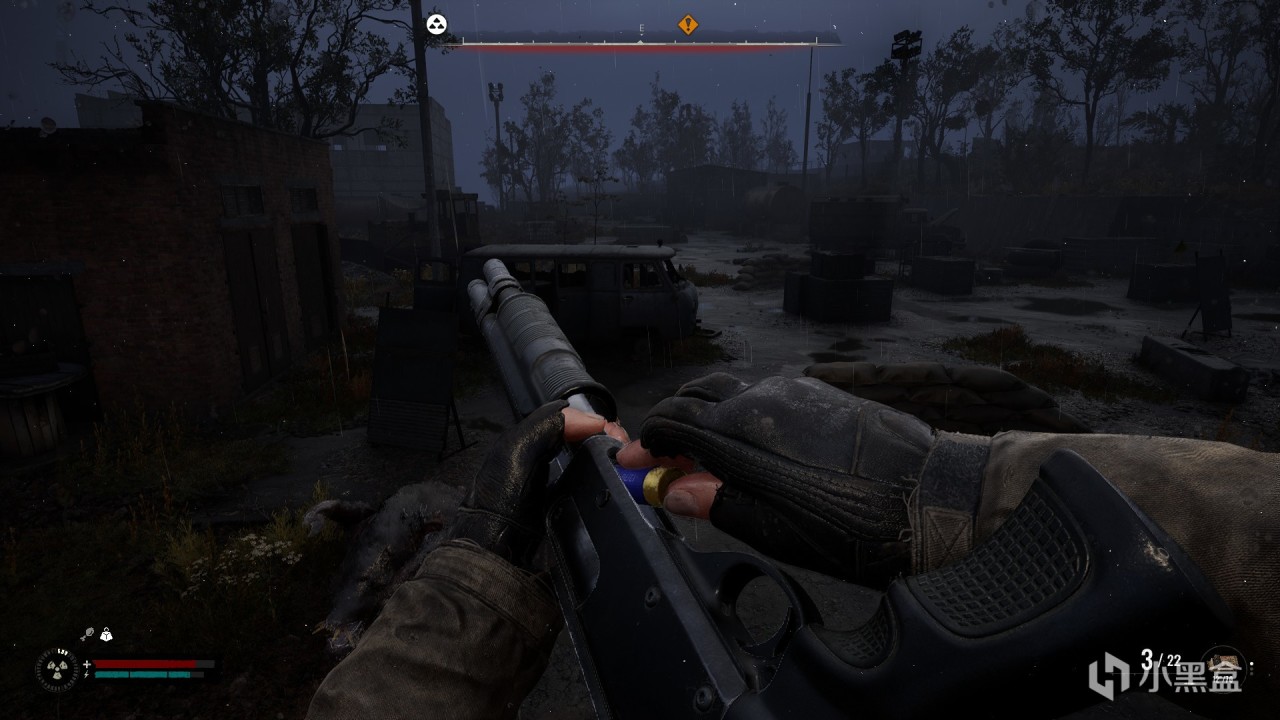 封鎖區自然少不了輻射,本作中的輻射便無處不在,暴露在輻射中時探測器會嘀嘀嘀響個不停,畫面上也會出現白色雪花特效,此時角色將緩慢掉血,若是再被敵人擊中附加個流血效果,那可真是要了老命。