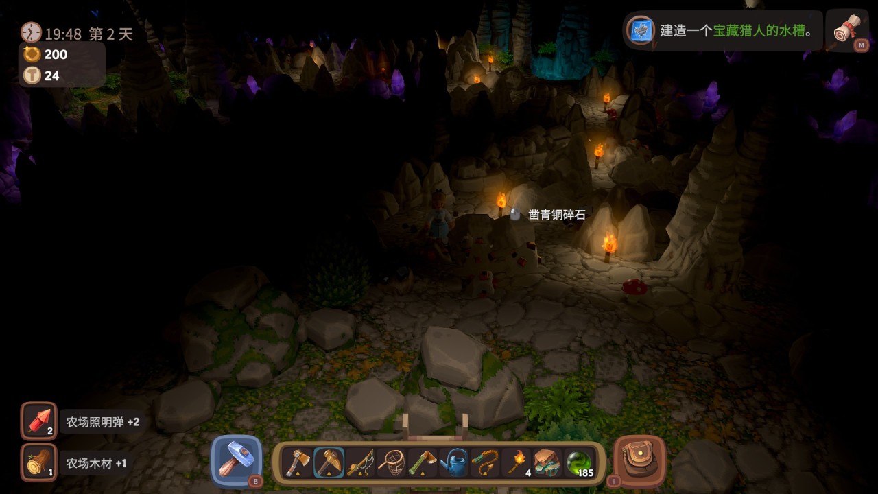 慢悠悠一棵树砍十多秒掉一块木头,一个矿石挖十多秒掉一个铜矿,随便造个东西起步也得三五个石头木头三五个矿,明明感觉什么要事也没干,一天的时间总能在叮叮当当的琐事之间悄然流走。