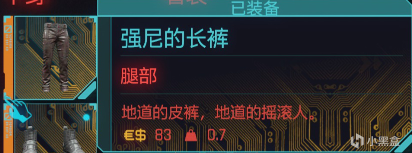 可以在任务中的房间二楼卧室床边的旅行箱中获得强尼的长裤,顺带一提任务中的密码门是2065,也可以床对面的电脑黑入破解