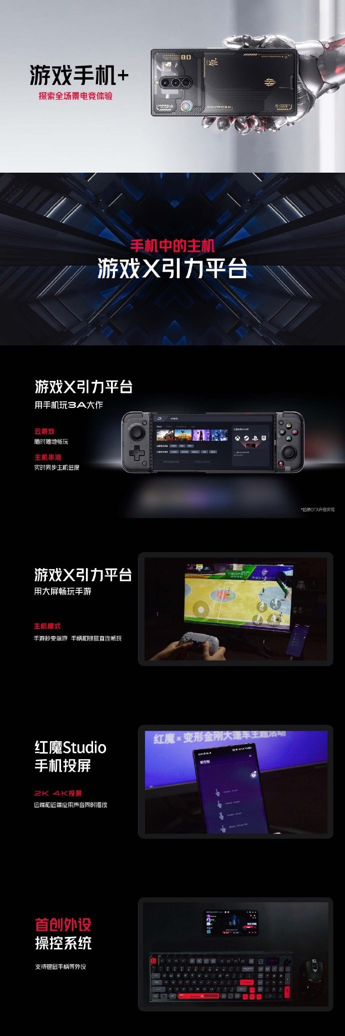 紅魔 8 Pro 還搭載了紅魔遊戲 X 引力平臺,支持聚合主機串流和雲遊戲,還能將手遊投到大屏,使用鍵鼠、手柄遊玩。