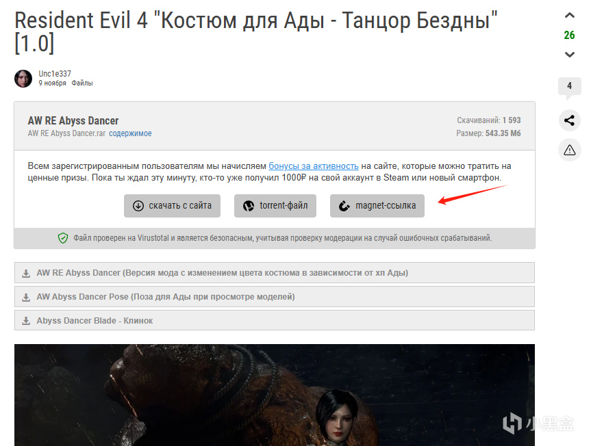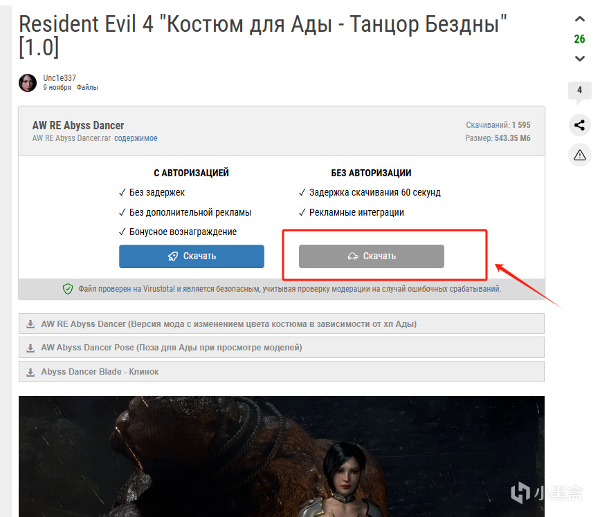 选择自己想要下载mod的标签(如艾达王 - 俄文这边网页翻译为了黄琬婷),浏览预览图进入到自己想要下载的mod页面(以封面服装mod为例),点击有慢速下载标识的按钮
