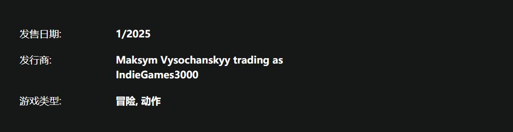 发行商为Maksym Vysochanskyy trading as IndieGames3000,发售日期为2025年1月,甚至还开放了添加愿望单功能