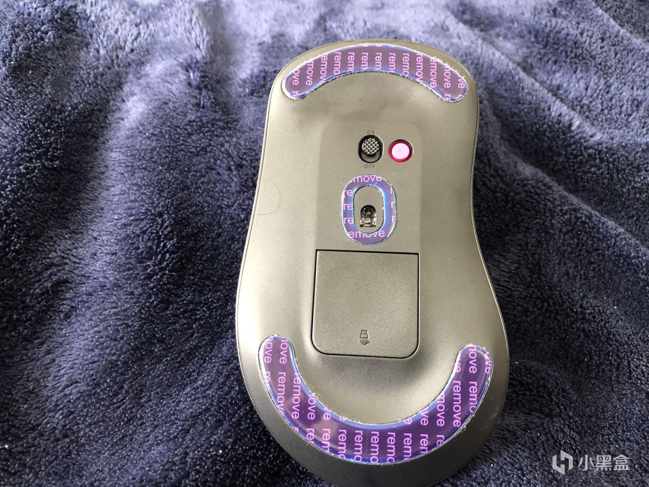 鼠标底部和独立的物理开关对照的是引人注目的红色Diy键。diy按键除了高度自定义以外,还因为在底部所以不会被误触。然后就是方形无线鼠标接收器收纳仓。