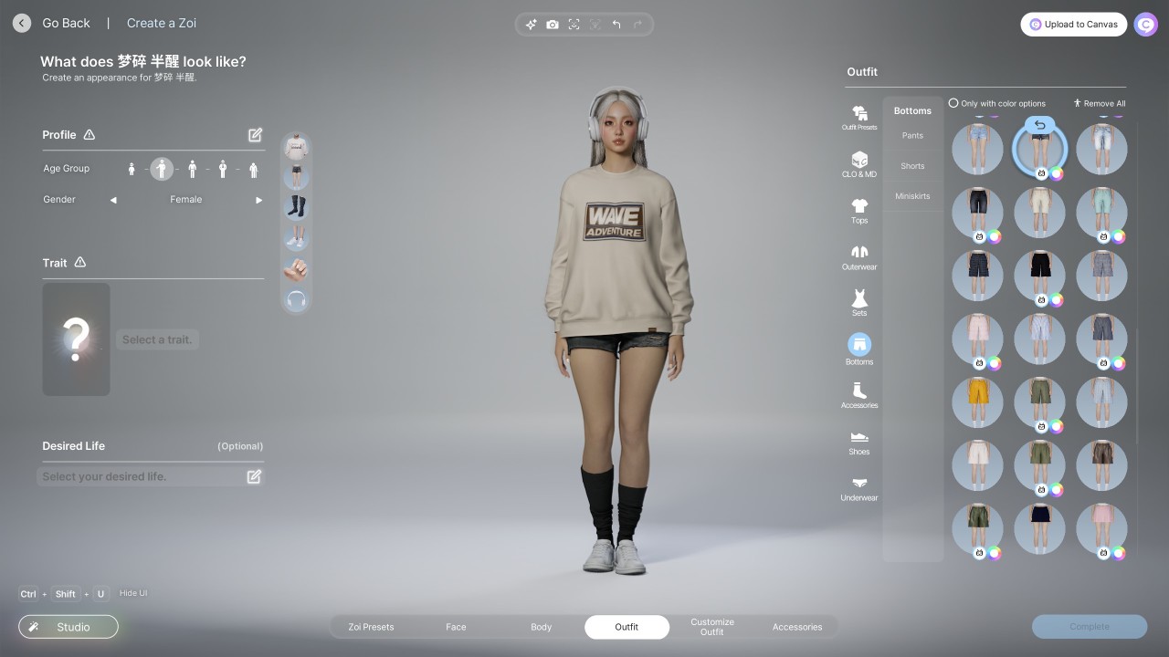 亮點在衣服、褲子可以更細節地調整長短和款式,以及領口的形式(V領、圓領等)。各種小配飾也挺豐富。