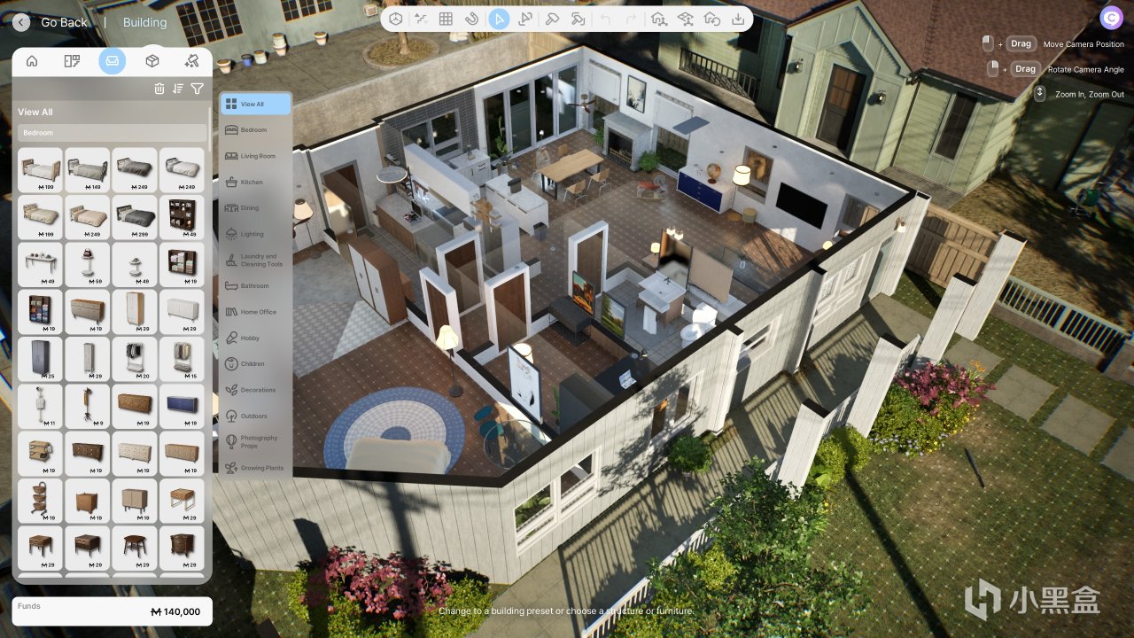 除了各式傢俱已經相當完備(聽說未來公測會提供上千傢俱),能八個方向建牆之外,還提供了建房的藍圖,地面放置藍圖安排房間佈局,能夠省下不少時間。