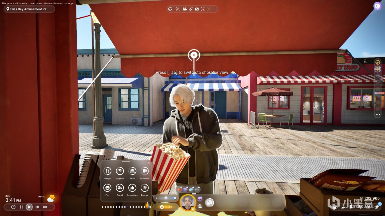用“TAB”切換越肩視角(第三人稱視角)和上帝視角,代入感相較於 Sim 4 更強。