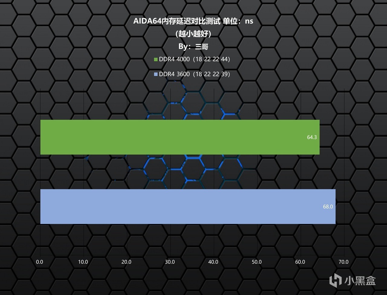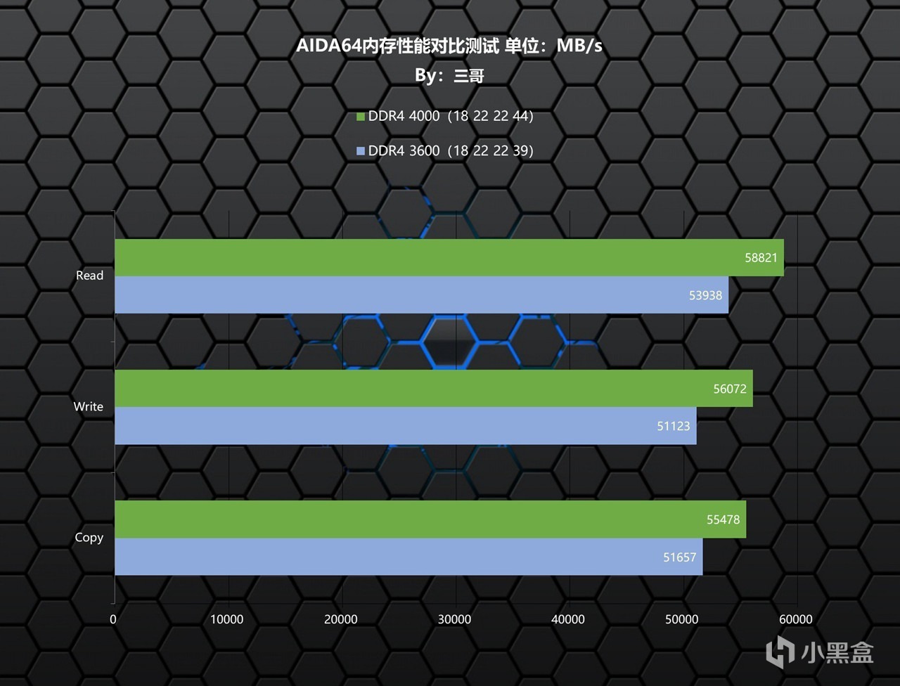跑个AIDA64缓存&内存基准测试看看,内存的读、写、复制性能均有提升,延迟也有所降低。