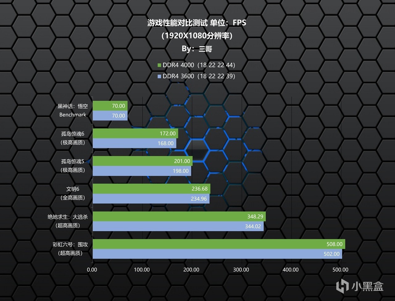 在1080P分辨率下,超频后相较XMP频率,除了个别游戏持平外(黑神话:悟空),其他游戏的帧率均有明显提升,其中以《彩虹六号:围攻》为最,提升了6帧。