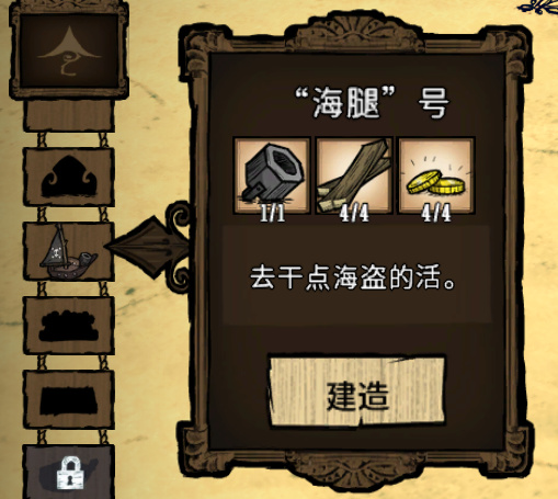 “海腳”號:在製作欄中,可以用船炮,4個木板,4個金幣制作。