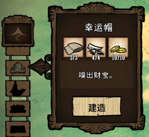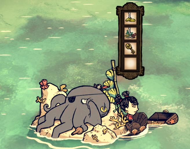 幸運帽:有10天耐久,木腿船長的幸運帽可以幫助他發現寶藏。只要裝備着這個帽子,新的藏寶地,就會在玩家附近的海島上生成,這使得藏寶地變成了可再生資源,挖寶藏時有概率出現蛇。