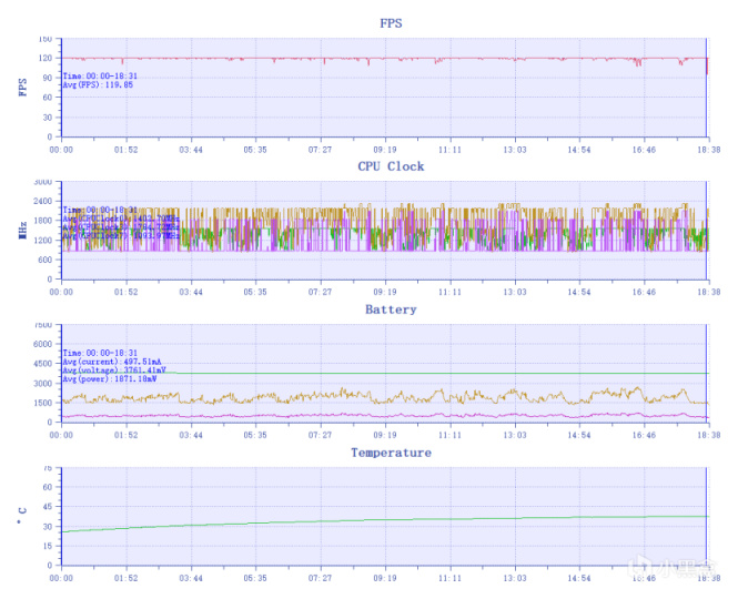 开启Monster模式后,18分钟王者荣耀平均帧率为119.85。