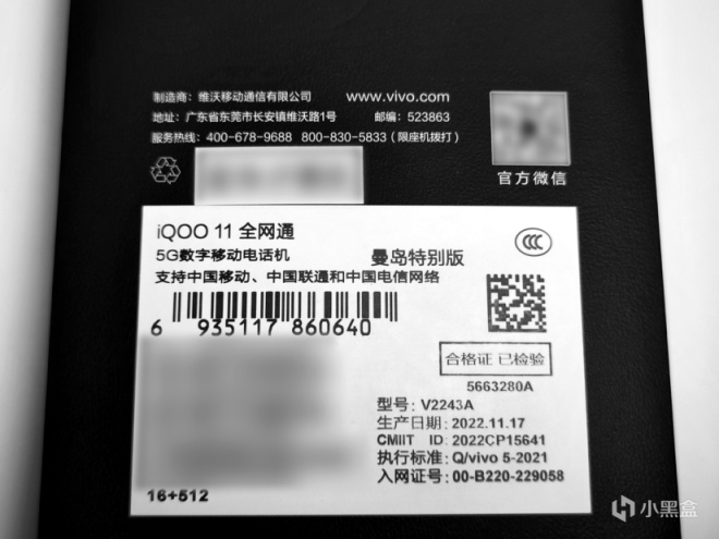 产品名称“iQOO 11”则在顶盖的前侧面。