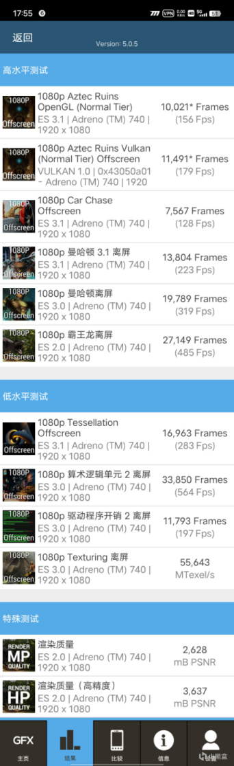 具体到游戏场景测试,虽然有V2芯片给8 Gen2打辅助进行插帧等优化,忽略掉vivo这颗杀手锏确实不公平,但由于V2是在显示输出后进行的插帧,手头暂无方法具体测试其实际帧率表现,不开启插帧等优化,仅测试8 Gen2本身的游戏表现。