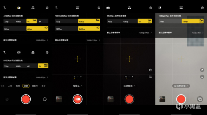 后置录像最高4K@60fps / 8K@30fps,支持0.6x~10x变焦。前置录像最高1080p@30fps。