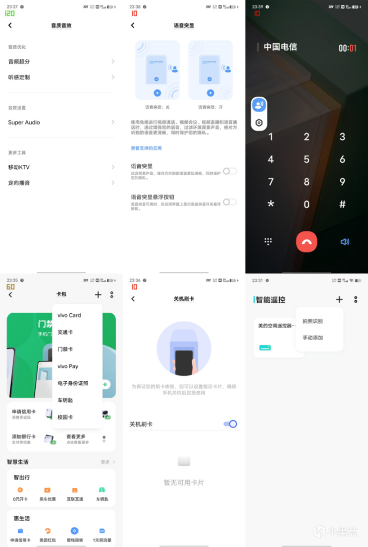 NFC支持关机刷卡,支持vivo Card(类似HUAWEI Card,和广发银行合作的信用卡)、交通卡、门禁卡(模拟13.56MHz未加密卡、空白卡、合作小区线上下发,坐标郑州没有支持小区)、电子证照eID、车钥匙(比亚迪、宝马、腾势)、校园卡(北大在内6所高校),暂不支持数字人民币硬钱包。