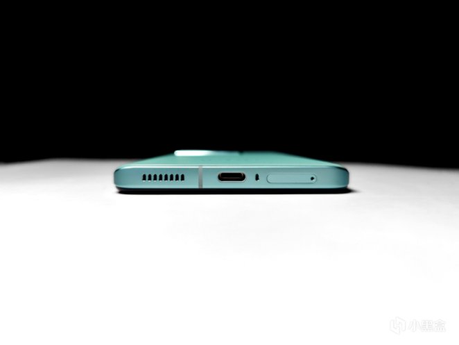 机身底部,左侧靠镜头模组一侧为8个椭圆瘦长底部扬声器开孔,后有一条天线带分割,中间是USB Type-C接口,右侧分别为底部麦克风开孔、SIM双卡卡槽,卡槽没有沿中轴线对齐有点难受。