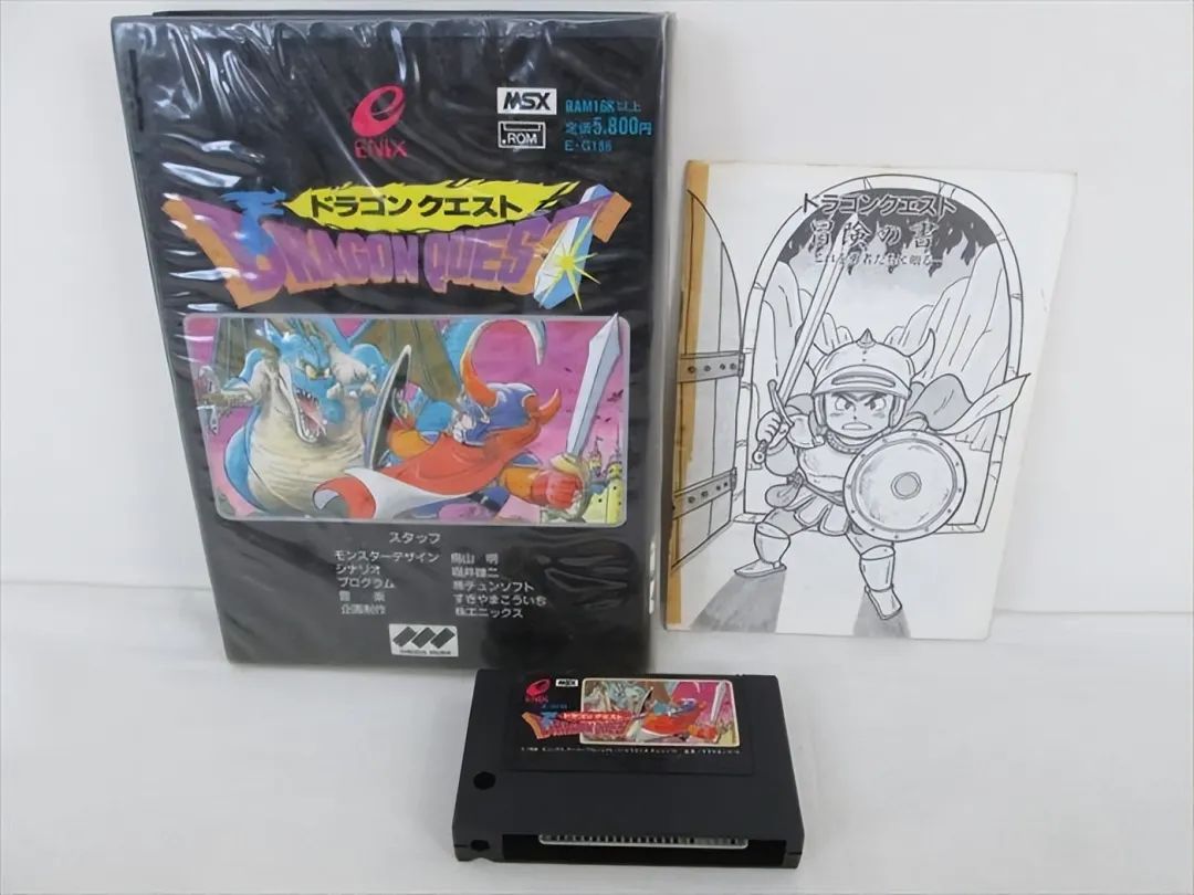 堀井开始在FC上进行RPG玩法探索,首先遇到的难题就是家用机手柄只有极少的按键,无法像PC那样通过键盘输入多种指令,于是将其改成了按下A键出现下拉菜单命令列表,再利用方向键选择执行的方式,列表中展示了主角可以执行的所有操作,并确保玩家不会因忘记关键操作的命令而卡住。利用这套方案堀井在FC上创作了文字冒险游戏《波多比亚连续杀人事件》(Portopia),1985年11月29日发售,由于其专注故事描述和演绎推理,在当时一众看起来有些低龄化的动作玩法中脱颖而出,在此之前两个月发售的《超级马力欧兄弟》引发了FC主机爆发式流行,中村光一设计的动作过关游戏《门门冒险》(Door Door),经过艾尼克斯发行后表现不俗,两人开始在业界崭露头角,决定把RPG玩法继续发扬光大。
