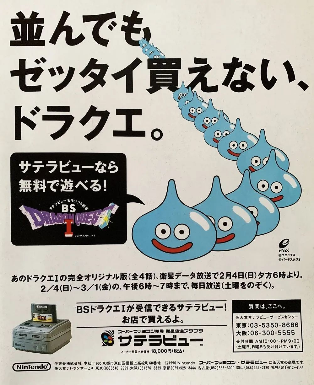 1996年2月4日,任天堂在自家的卫星游戏服务Satellaview平台上推出了《BS勇者斗恶龙》,这款SFC主机外设可以通过卫星传输网络信号,不仅可以玩专属的游戏还能与全国用户进行互动,在当年实属黑科技。BS版相比卡带版难度更低,主角一上来就有了铜剑等强力装备,打怪也会有道具掉落,另外在游戏中设置了46块徽章,隐藏在世界各地角落供玩家搜集,这个稀有的版本如今可以通过模拟器体验。