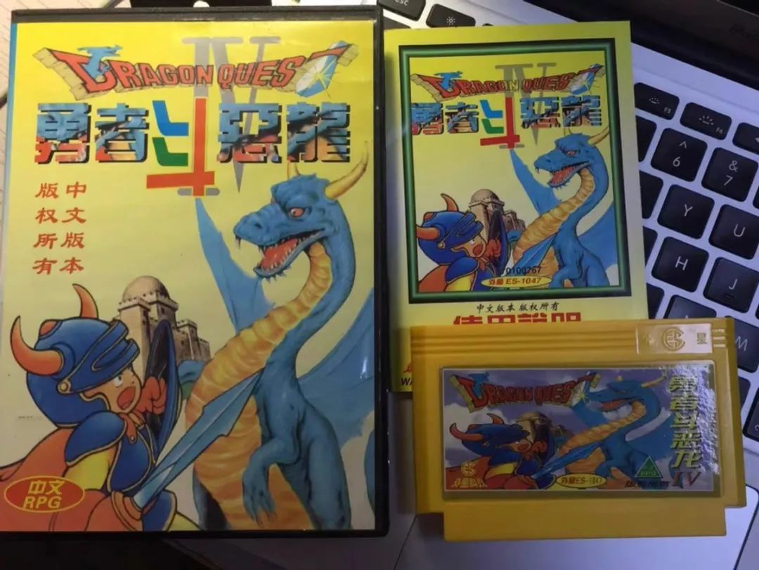 值得一提的是,国产组装卡带商外星科技,曾以FC日版为基础,自行制作了汉化版本,标题名为“勇者斗恶龙4”,游戏封面融合了日本卡通风格主角和欧美写实风格恶龙,当年曾在国内组装卡带市场广泛流行,很多小伙伴就是从此接触到这个系列。
