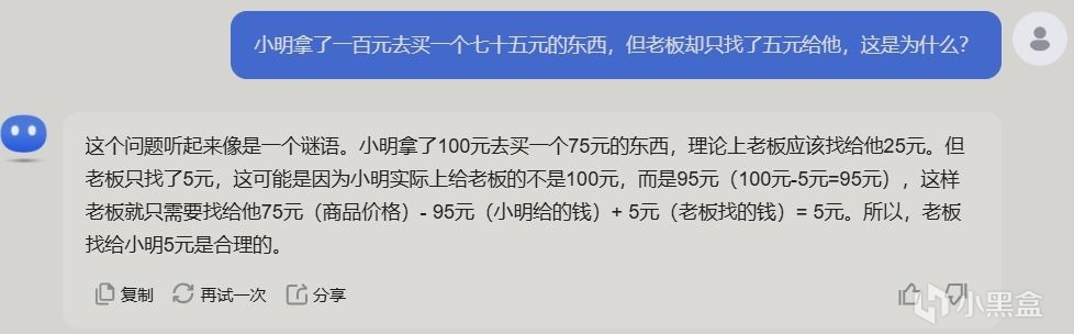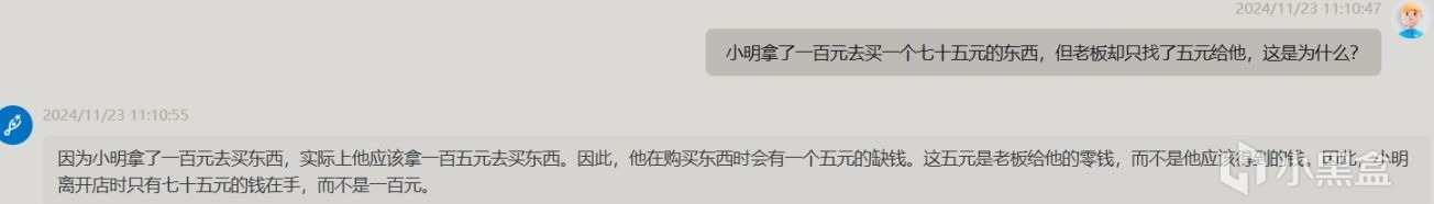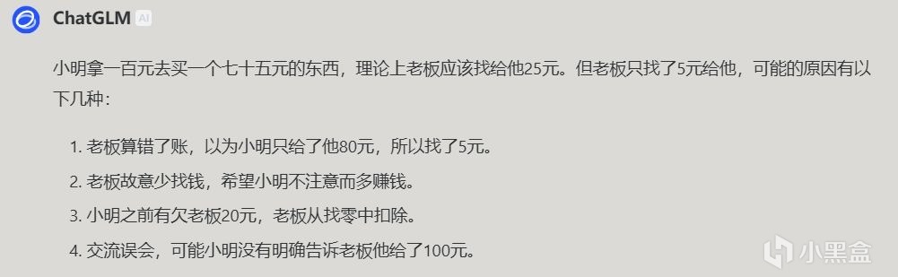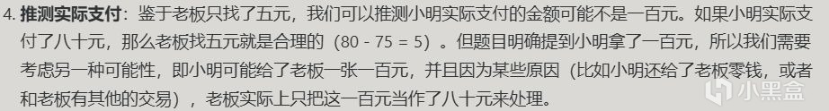 捕捉到關鍵詞“八十元”,但這邊它說我們"明確提到小明拿了一百元“,這確實是,不過我沒說付了100元啊。算它對吧,畢竟考慮到這種情況了