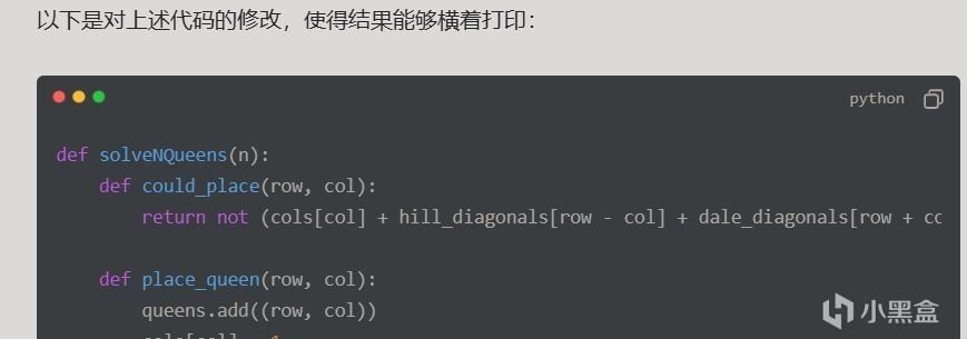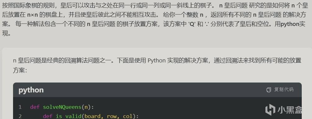 按照國際象棋的規則,皇后可以攻擊與之處在同一行或同一列或同一斜線上的棋子。 n 皇后問題 研究的是如何將 n 個皇后放置在 n×n 的棋盤上,並且使皇后彼此之間不能相互攻擊。 給你一個整數 n ,返回所有不同的 n 皇后問題 的解決方案。 每一種解法包含一個不同的 n 皇后問題 的棋子放置方案,該方案中 'Q' 和 '.' 分別代表了皇后和空位。用python實現。