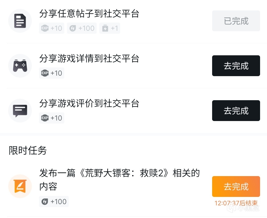其中包括限時任務評價遊戲分享帖子等等都是少量的盒幣以及經驗獎勵的