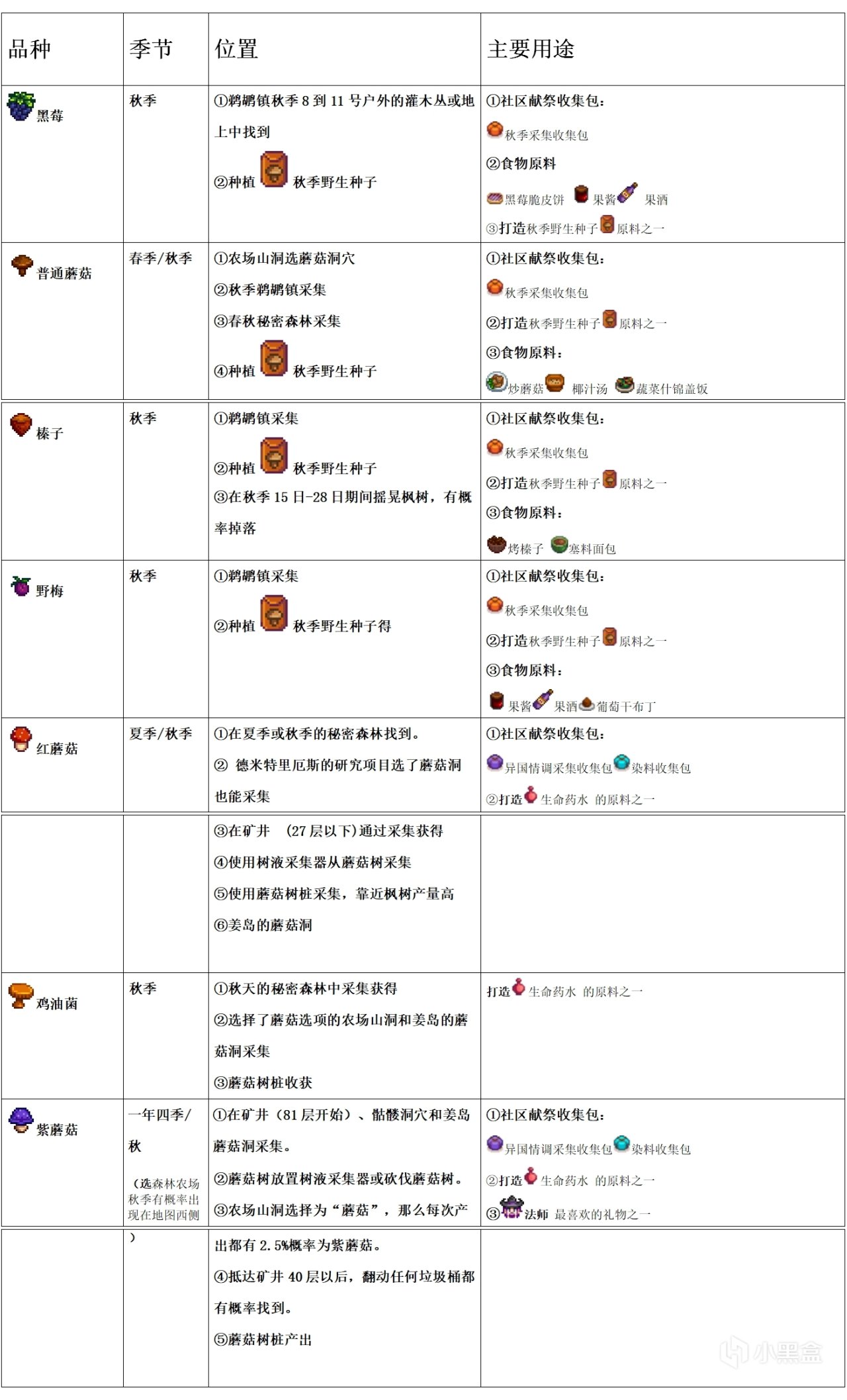 ①在秋8-11日的灌木叢可採集到黑莓,秋14日之後搖晃楓樹有概率獲得榛子。