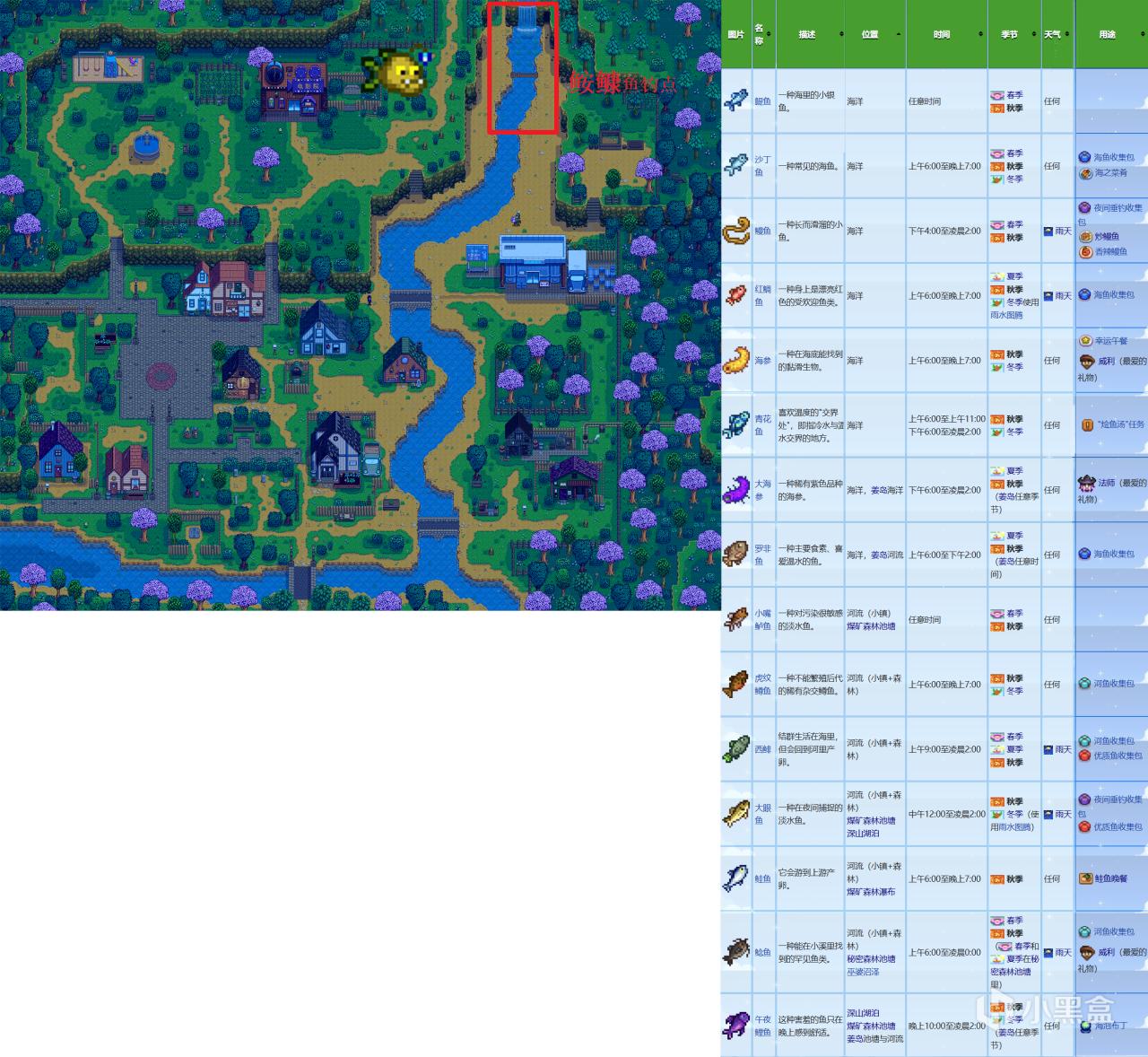②釣起鮟鱇魚需要一定條件,要在秋季的任意時間和天氣,釣魚等級達到3級,到達鵜鶘鎮上河流最北端的木橋開釣。
