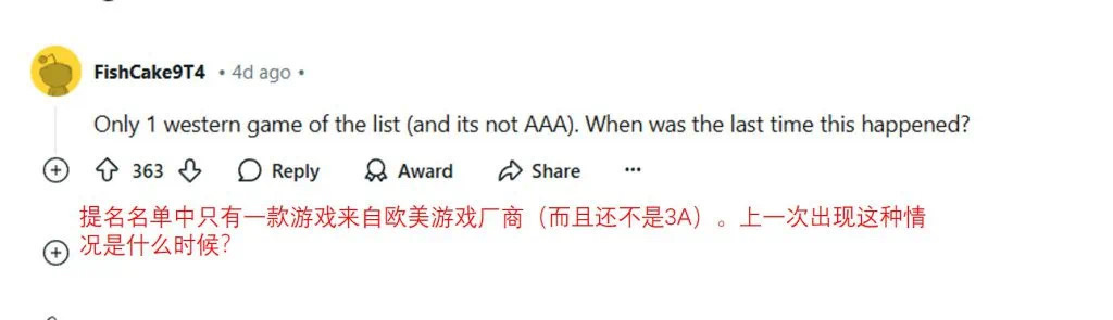 一个必须要认识到的情况是,在近两年的PC主机游戏市场上,欧美游戏厂商在失势,相对应的就是亚洲游戏厂商的全面崛起。比如在今年TGA年度游戏提名的6款游戏里,只有一款《小丑牌》来自欧美厂商,而且还不是3A游戏,其余游戏要么来自中国厂商,要么来自日本厂商。