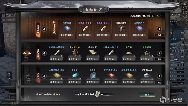 條件達標之後我們就可以加入宗門,在堂主這邊選擇交易這樣就可以看到我們可以兌換的東西,當我們加入之後就默認是一個外門弟子身份(宗門的晉升順序是外門弟子升內門弟子,內門弟子升親傳弟子,就這樣以此類推)。