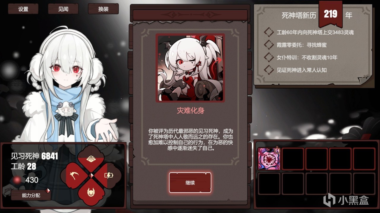 《死神模拟器》作为《尤格索托斯的庭院》番外,有着非常出色的美术,故事聚焦在特莉波卡在死神塔的生活上,玩法简单但是内容却很丰富,与前作的联动角色和大量的历史事件也为游戏增添了很多趣味,游戏售价不贵画风可爱,对应喜欢相关题材的玩家来说,值得入手体验。