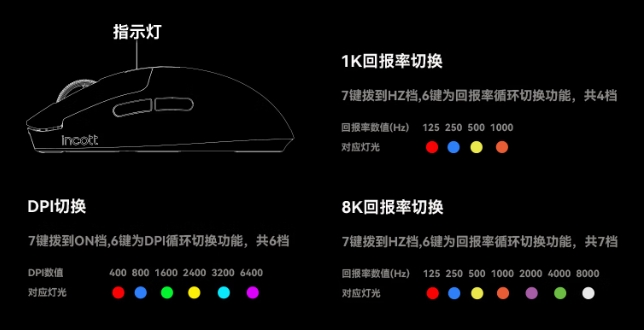 因科特 G23采用原相 PAW3395/3950 传感器,鼠标论询率为8000HZ,标配版需单独购买8K无线接收器。