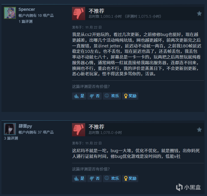 《CS2》近期差評率升高,大多數差評原因爲遊戲優化和修改賽制