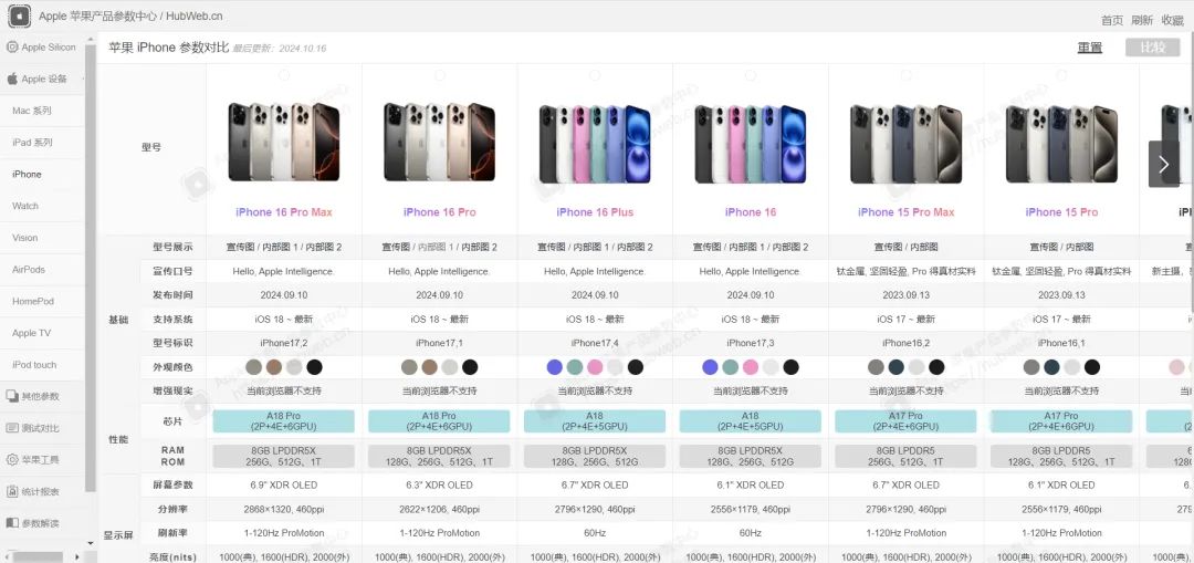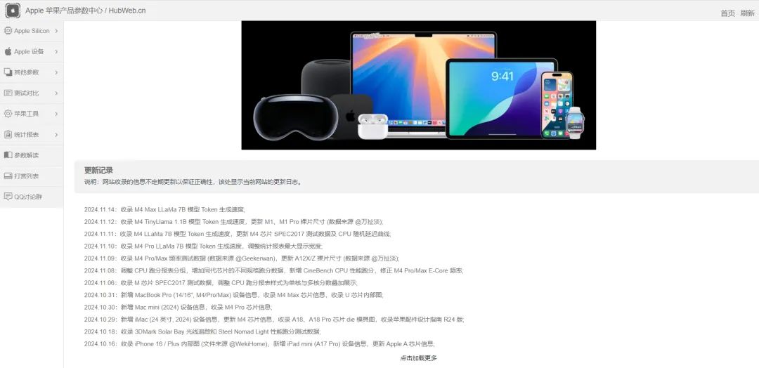 這個網站收集了關於蘋果產品的一切參數信息,包含Mac、iPad、iPhone、Vision、iPod touch、Apple Watch、AirPods、HomePod、Apple TV 產品信息。
