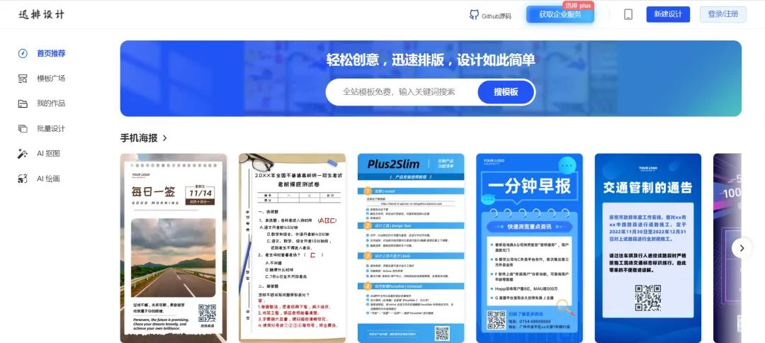 平常時不時會有個設計海報的需求,或者做運營崗位需要經常做封面、配圖啥的,上網一搜幾乎都是要收費的網站。