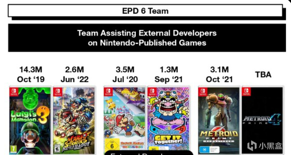 第六組負責監督和製作由外部工作室開發的遊戲,比如《紙片馬里奧》、《銀河戰士》和《路易吉鬼屋》系列,六組主要負責發行和協助開發,雖然這些遊戲由外部工作室開發,但必須保持與任天堂品牌一致的風格、質量和精神,六組確保遊戲能順利過渡並在任天堂平臺上推出;七組也是協助開發組,曾參與開發《銀河戰士》和《FAMICOM 偵探俱樂部》的重製版本,目前正在研發最新作《密特羅德4》。