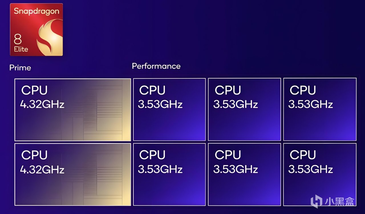 高通8 Elite採用的高通全新自研的Oryon CPU架構,兩個主頻高達4.32Ghz的超大核心和6個主頻高達3.53Ghz的性能核心構成。性能核心的頻率已經接近天璣9400的超大核心頻率。