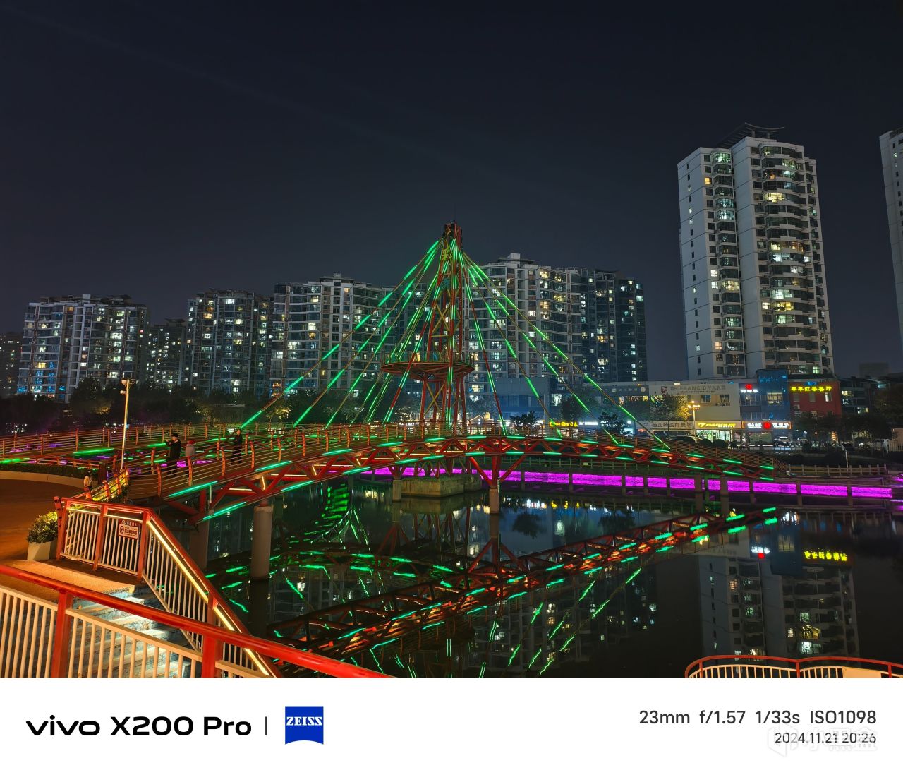 X200 Pro的主攝,夜景質感非常好,同時細節的描繪和你也很到位。對於光源的壓制,真的是一絕。面對色彩不同,亮度不一的光源,處理也非常好。
