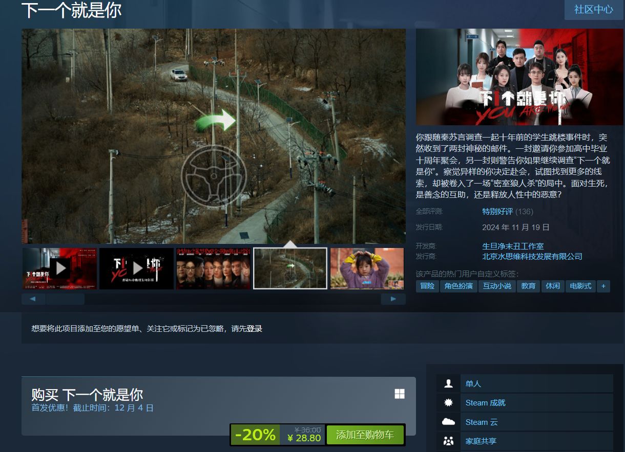 不同于市面上第一人称的真人恋爱影游,《下一个就是你》采用了第三人称视角来展开故事,回到了十年前的高中校园,走进每一个角色的内心世界。游戏中用角色的内心世界还原了高中课堂,讲台、公告、奖状和书桌上线索藏着每一个人的故事。