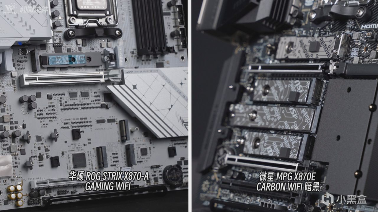 固态的散热马甲上微星的X870-P是只给了一块在5.0x4的硬盘位上。技嘉的散热马甲则是全覆盖。