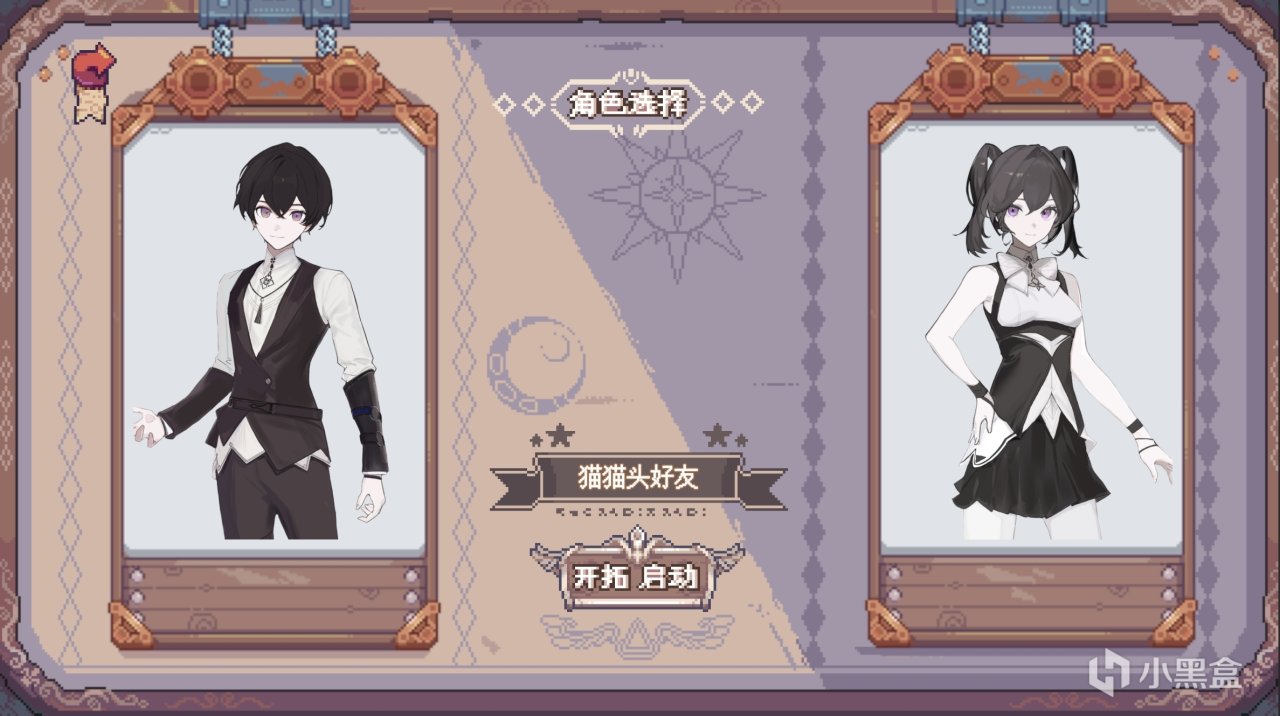 這三位呢就是目前薯薯透露的遊戲中會加入我們主角團的角色。而我們主角嘛也是有立繪的,並且爲了貼合大家的喜好,本作的主角是自定義性別和名字的。嘛,不過我感覺黑白配色有點單調,加上紫色瞳孔,不是很合我的喜好。