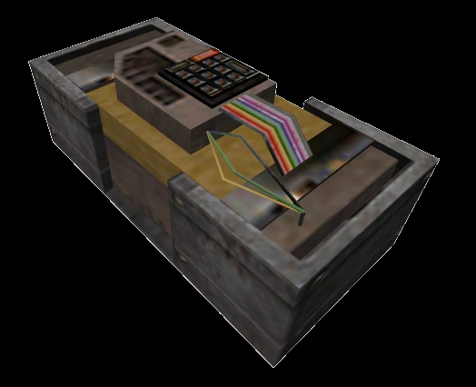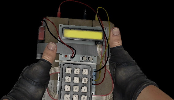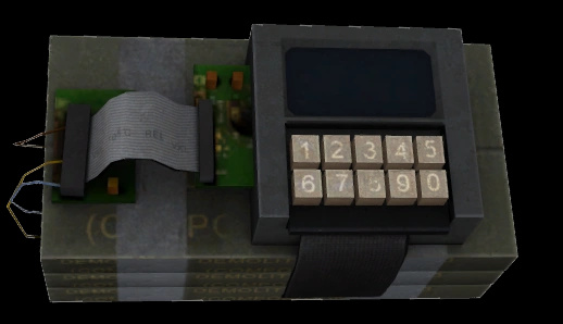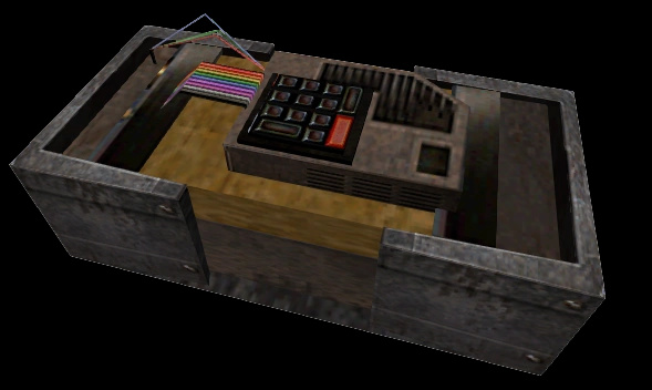 而此时的C4炸弹模型是一个灰绿色的盒子,正面有一些按钮,旁边有五颜六色的线连接到炸弹本体