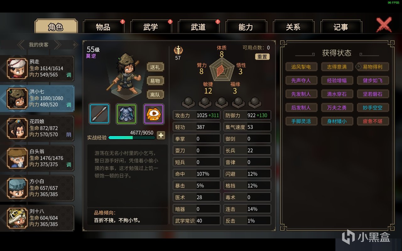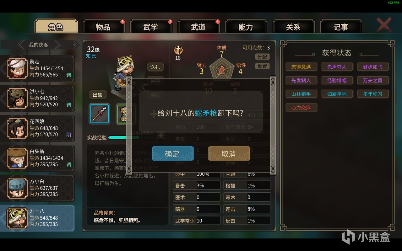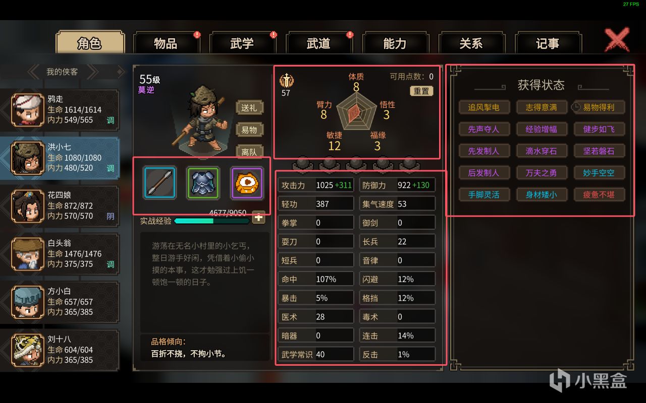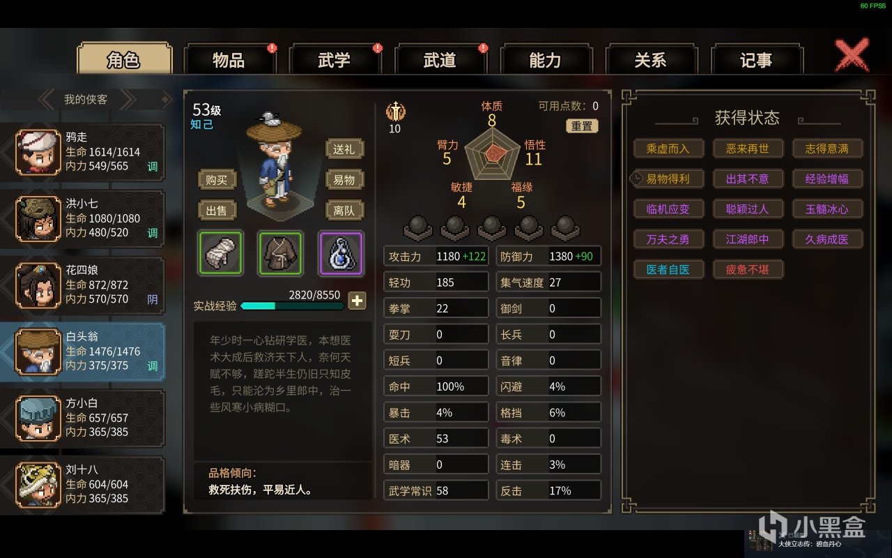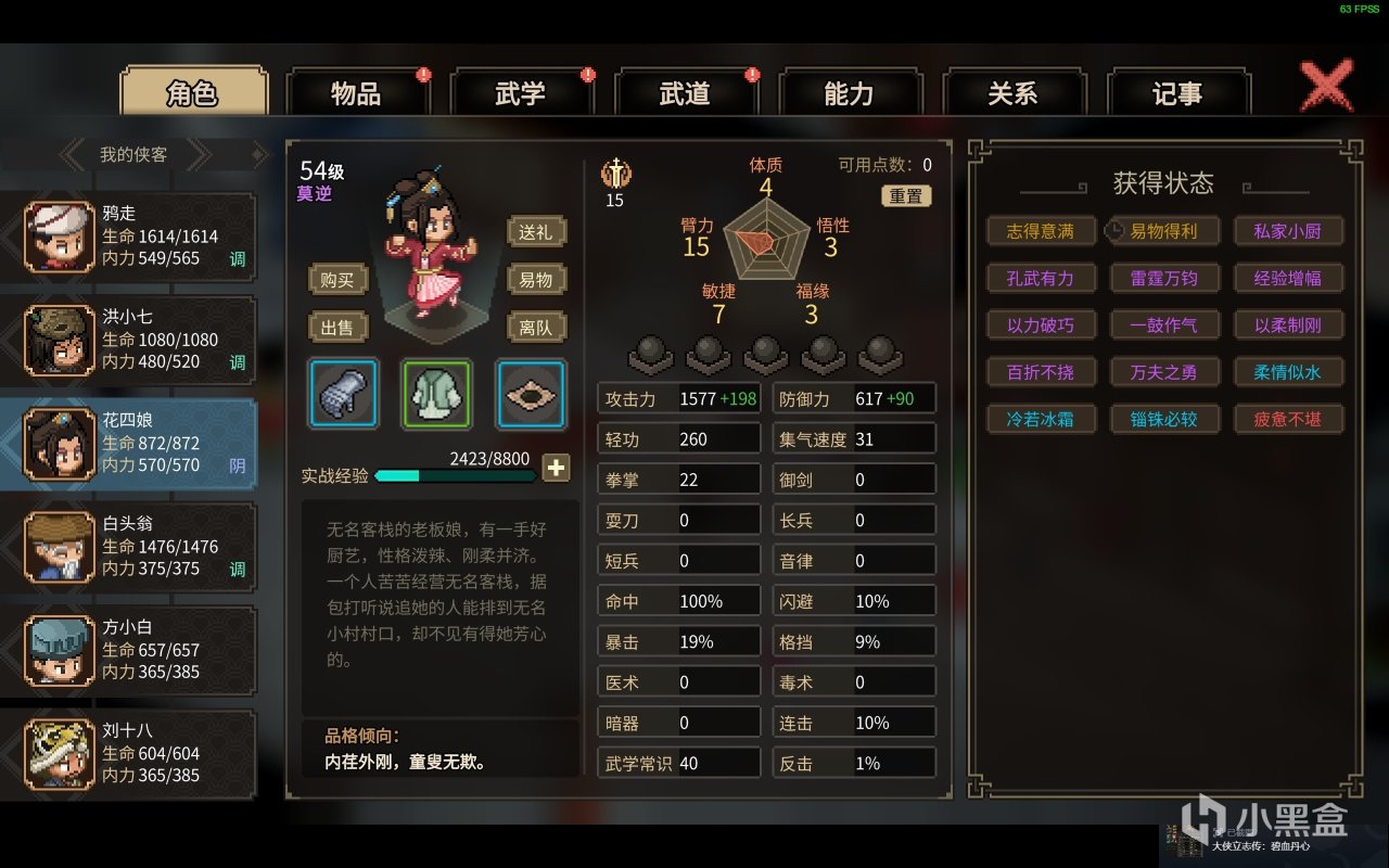 对了,角色本身也是有着礼节,道德等属性的,但是谁规定了我就必须得当好人呢?多样性选择的江湖,才是我想要的江湖,不过游戏都叫《大侠立志传》了那我肯定是先当大侠了啊!