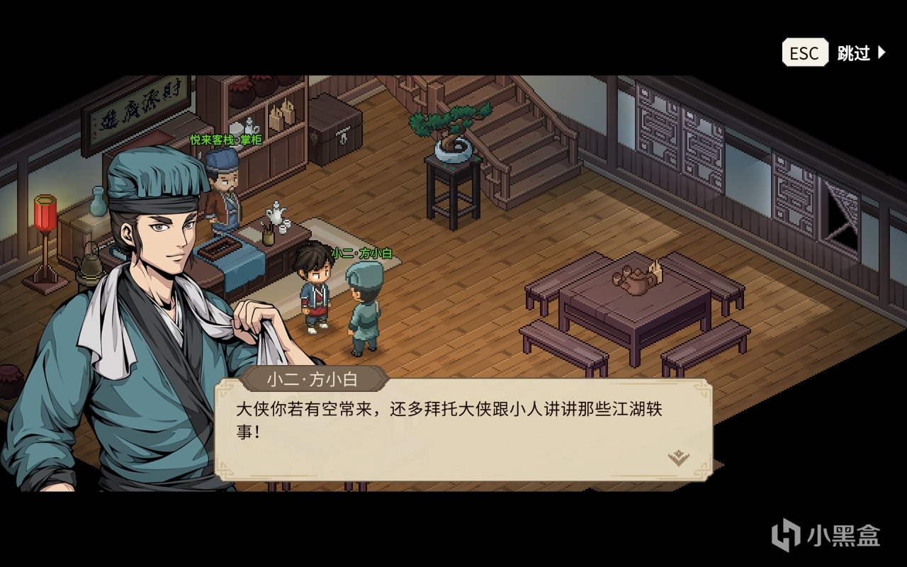 同时游戏的开局我个人认为是做的十分优秀的,他们每个角色之间的关系并不是单独独立的,就如无名村庄之中的角色们之间都有着十分紧密的练习,例如老铁匠和老猎人之间的爱恨情仇,包打听和四娘之间的关系等等,这些都会在我们探索这片江湖的时候给予我们更加沉浸的感觉,你会觉得这片江湖充满了“人”的味道,而不是冷冰冰的勾心斗角。