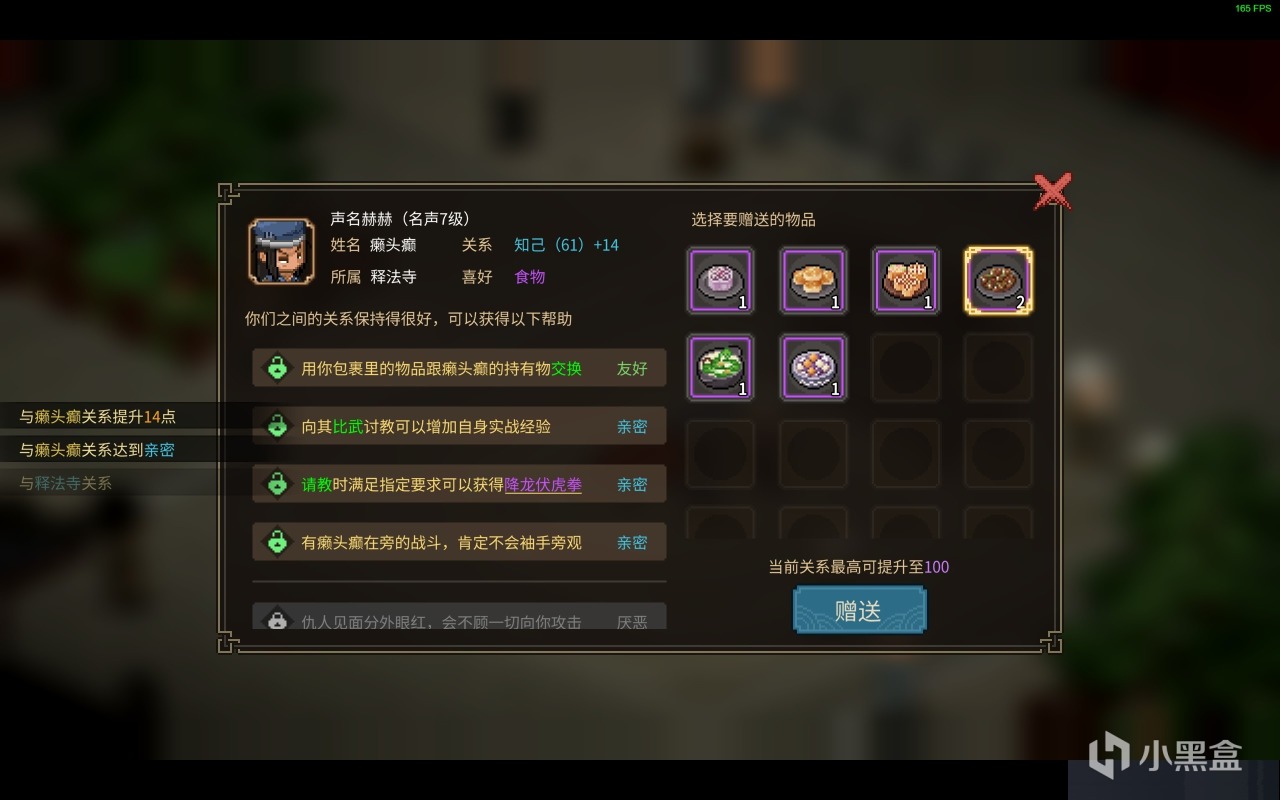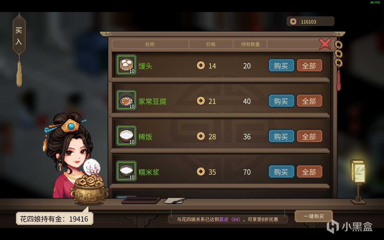 在《大侠立志传》之中,玩家们主要的增加好感度手段就是送礼,当然如果你人傻钱多也可以去把各大商店的NPC都买一边直接用金钱腐蚀大家嘿嘿~同时NPC的商店每天都会进行刷新,只要玩家们有钱的话都建议把各种送礼道具买一波~