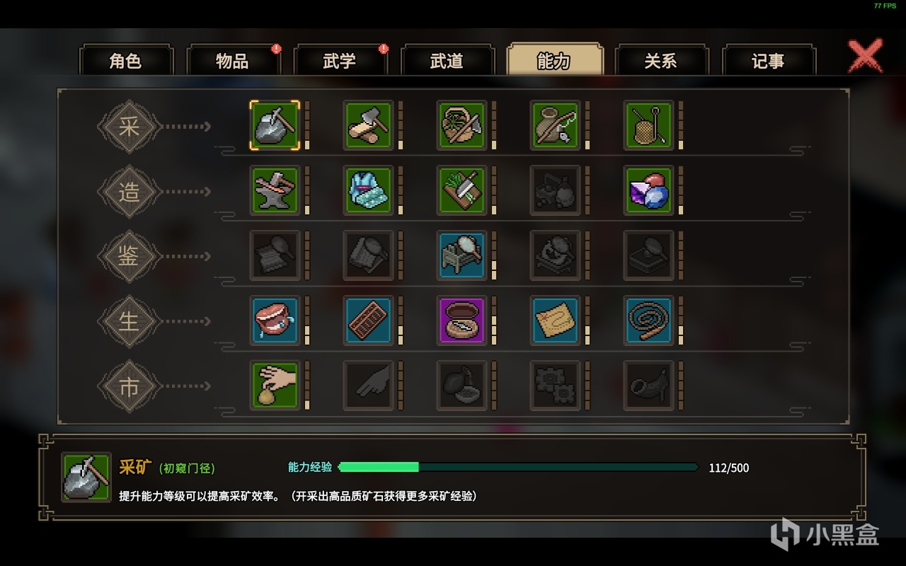 同时行走江湖之中,谁会嫌弃自身的本领不多呢?在《大侠立志传》之中,对于玩家本身本领的内容做的是挺丰富的,我一度以为是回到了《最终幻想14》里面刷生产等级的时候了。玩家们可以学习到各种奇淫技巧,包括但不限于锻造,烹饪,机关,口才,经商,探索,伐木,采集等十数种不同的副职业内容,这些内容也会在后续游戏里面为了玩家们带来更加丰富的体验,当然升级的过程来说就是十分艰难了。