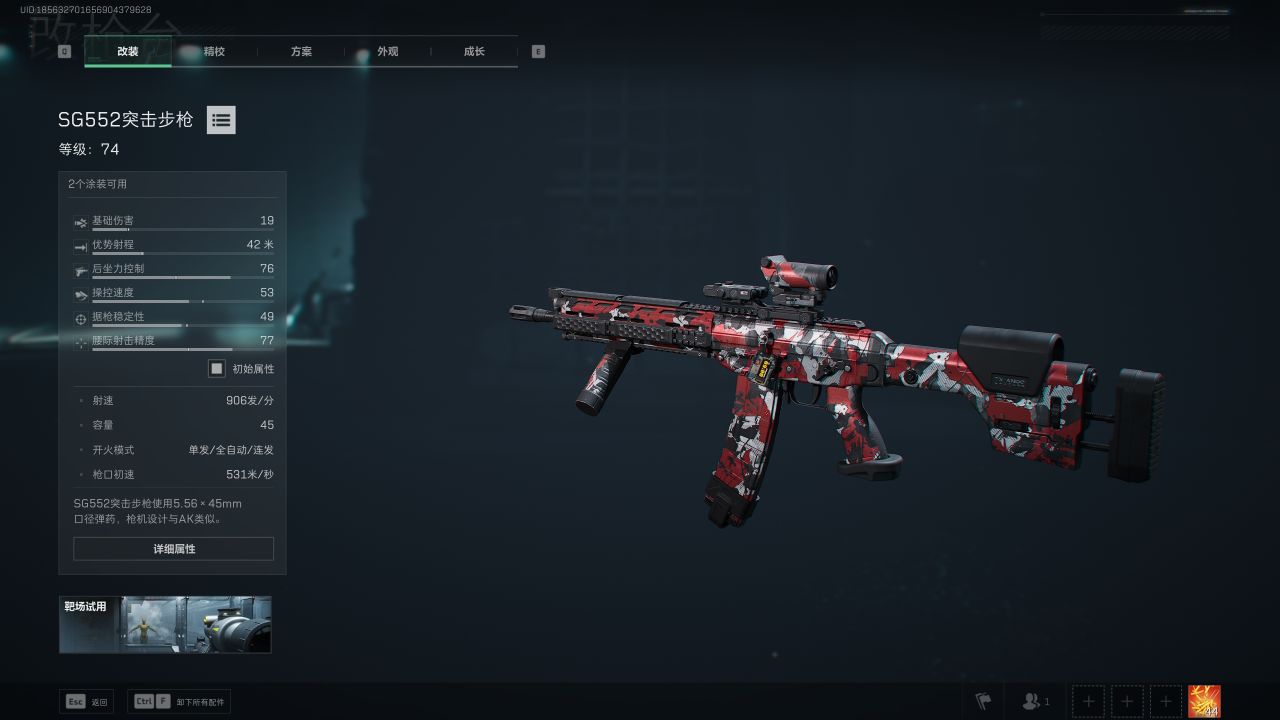 然後是sg552,上個賽季末策劃抬了一手腹部傷害表現,現在用起來不像加強前那麼抽象了,本身強度一般,加上目前大戰場環境就是輪椅對撞,這把槍實在沒有什麼上場環境,總體來說還是不推薦使用的