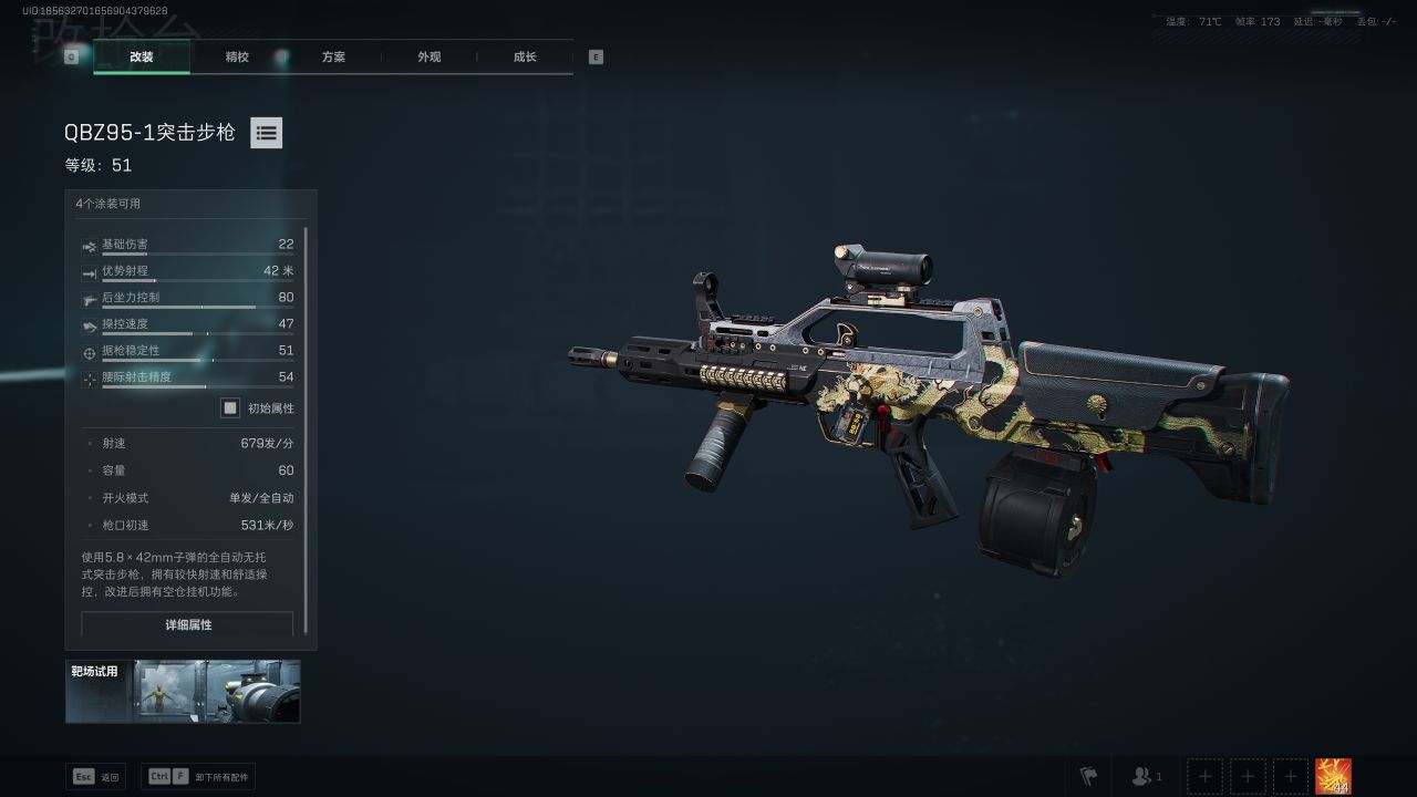 國家財產qbz95,雖然同是優質戰士專武,但95和191的強度幾乎是天壤之別,95拉胯的彈道不管怎麼改都會穩定漂移,加上配件收益削弱,真正做到了射速慢的同時還難壓,並且傷害還低,完全是集百家之短的飛舞槍😥