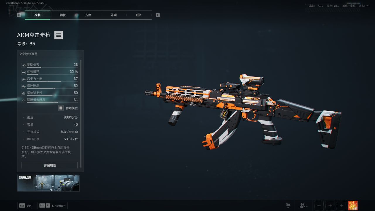 akm在沒更新前完全稱的上是突擊兵t0步槍,不管是裝上彈鼓當機槍用還是全堆機動性變身衝鋒槍,強度都很在線。只是更新後ak系幾乎通通捱了刀狠的,基礎開火穩定性被砍不說,同方向後座力收益降低更是讓本就拉胯的彈道雪上加霜,目前來看191成爲了ak的絕對上位,不過本身性能並沒有被砍,所以我還是建議大家在沒有解鎖191前過渡一下,下面是改裝方案