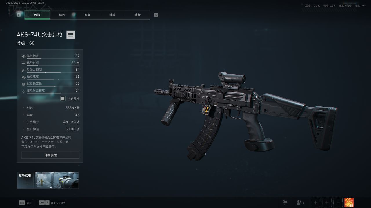 aks74u放在突擊武器庫裏實在沒什麼亮眼之處,整體就是一把射速和射程更低的akm,ak有的缺點它也有,還比ak少一個精校位,橫向對比akm來看完全沒有選擇它的理由